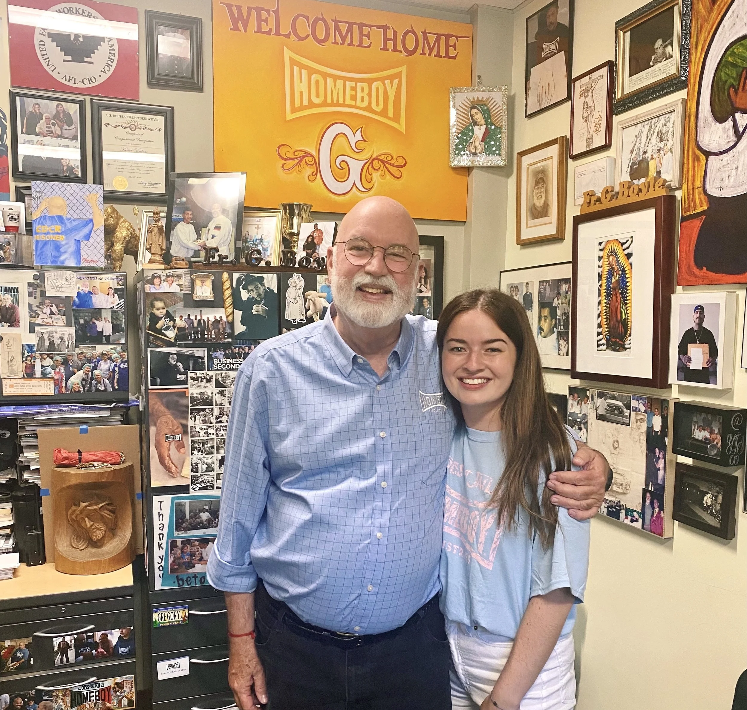 Kait (right) with Fr. Greg Boyle at Homeboy Industries.