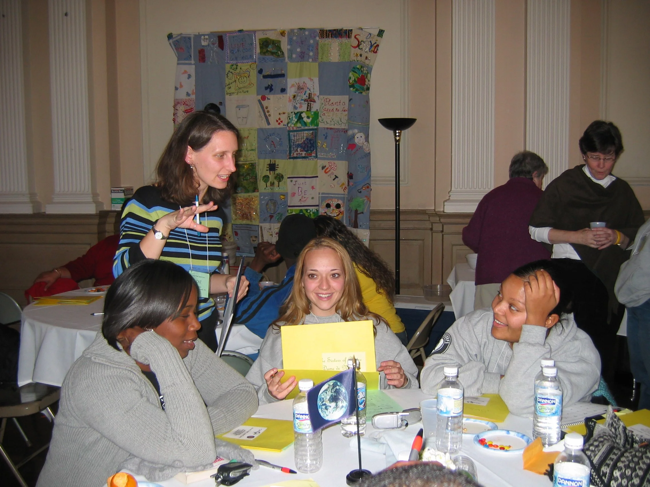 Melissa (center—holding the yellow sheet of paper) during a MidYear conference in 2005.